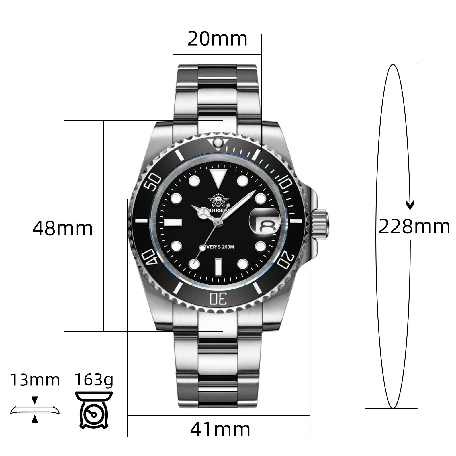 Watch weight: 163g (including steel strap)